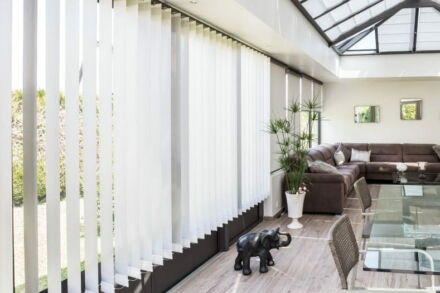 Afin de profiter au mieux de vos espaces vitrés, vérandas, puits de lumière, nous avons développé une gamme de stores verticaux qui convient à tous les profils d’aménagement.